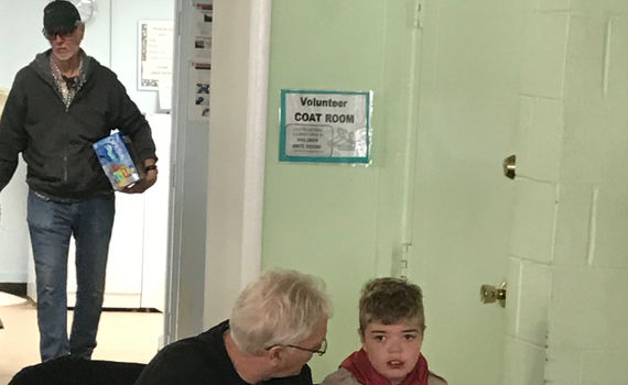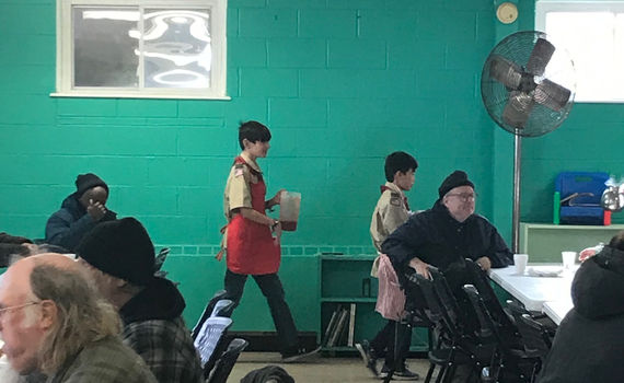 Scouts at a local Food Bank in November 2019. They served food and help clean the center's school rooms.